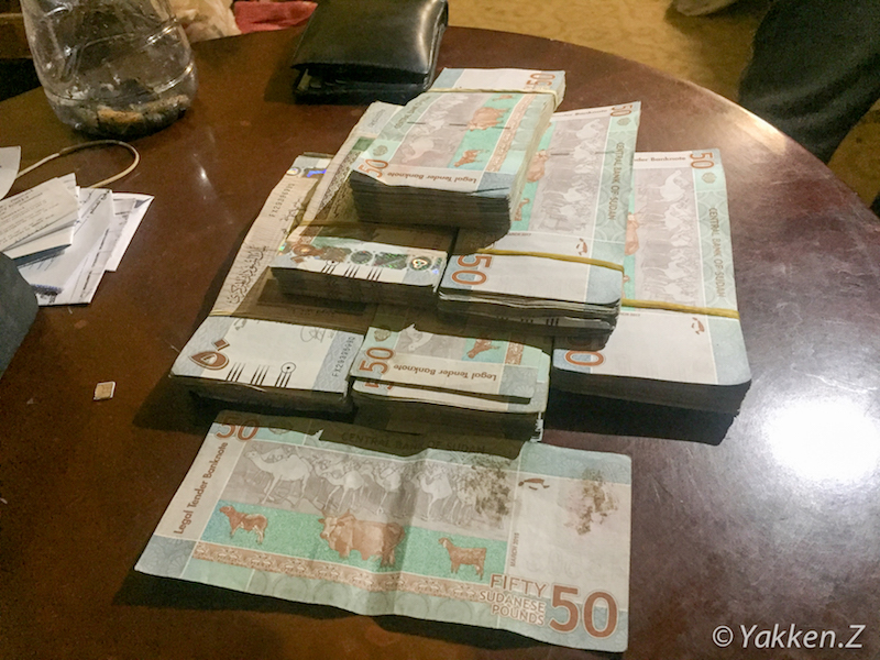 現在、スーダンは自国の通貨が暴落していて、国民がスーダンポンドを信用しておらず、アメリカドルや隣国のエジプトポンドを信用しており、アメリカドルもしくはエジプトポンドを持っていると良いレートでスーダンポンドに両替してくれるのだ。